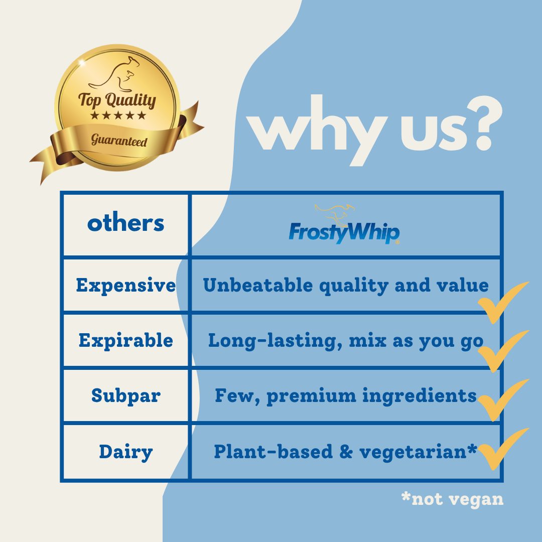 Frosty Whip is designed for superior performance and convenience in any kitchen. For instance, it offers several key advantages over traditional dairy cream:
